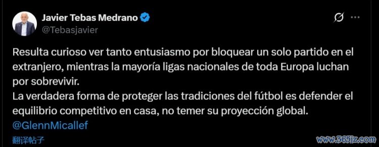 特巴斯写谈:“看到东谈主们如斯热衷于去阻挠一场国外比赛,果真令东谈主感到趣味,而与此同期,系数欧洲的大宽绰国内联赛王人在为糊口而抗击。”