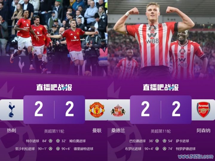 11月09日讯 本轮进行的意甲/英超比赛中,米兰2-2战平帕尔马、曼联2-2绝平热刺,阿森纳2-2被桑德兰绝平。