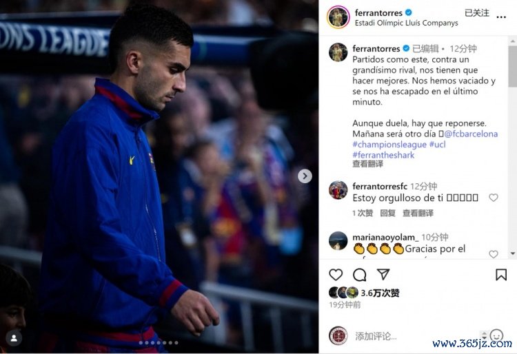 费兰-托雷斯社媒写谈:“像这么的比赛——对阵重大的敌手——会让咱们变得更好。咱们依然拼尽全力,但在终末一分钟落败。”