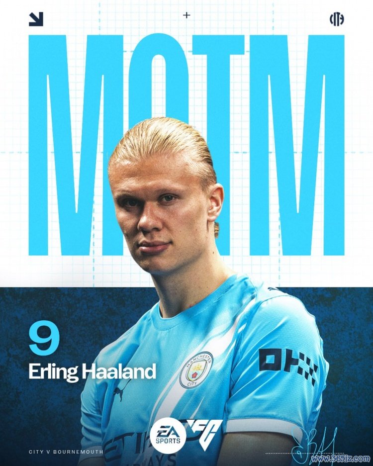 11月3日讯 2025-26赛季英超第10轮,曼城主场3-1伯恩茅斯。哈兰德首发出战,孝顺双响,赛后当选队内最好球员。