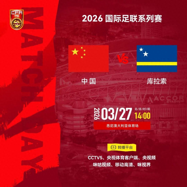 2026国际足联系列赛澳大利亚站即将打响,中国国家男子古代足球 队将于北京时间2026年3月27日迎战库拉索队、3月31日迎战喀麦隆队。