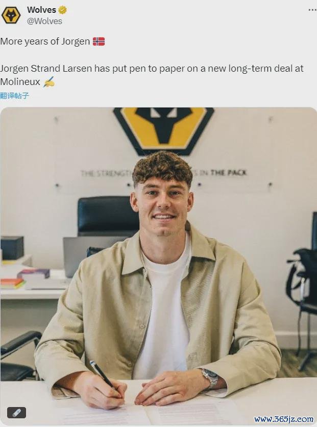 官方:尤尔根-斯特兰德-拉尔森和狼队签下了新的弥远协议。
