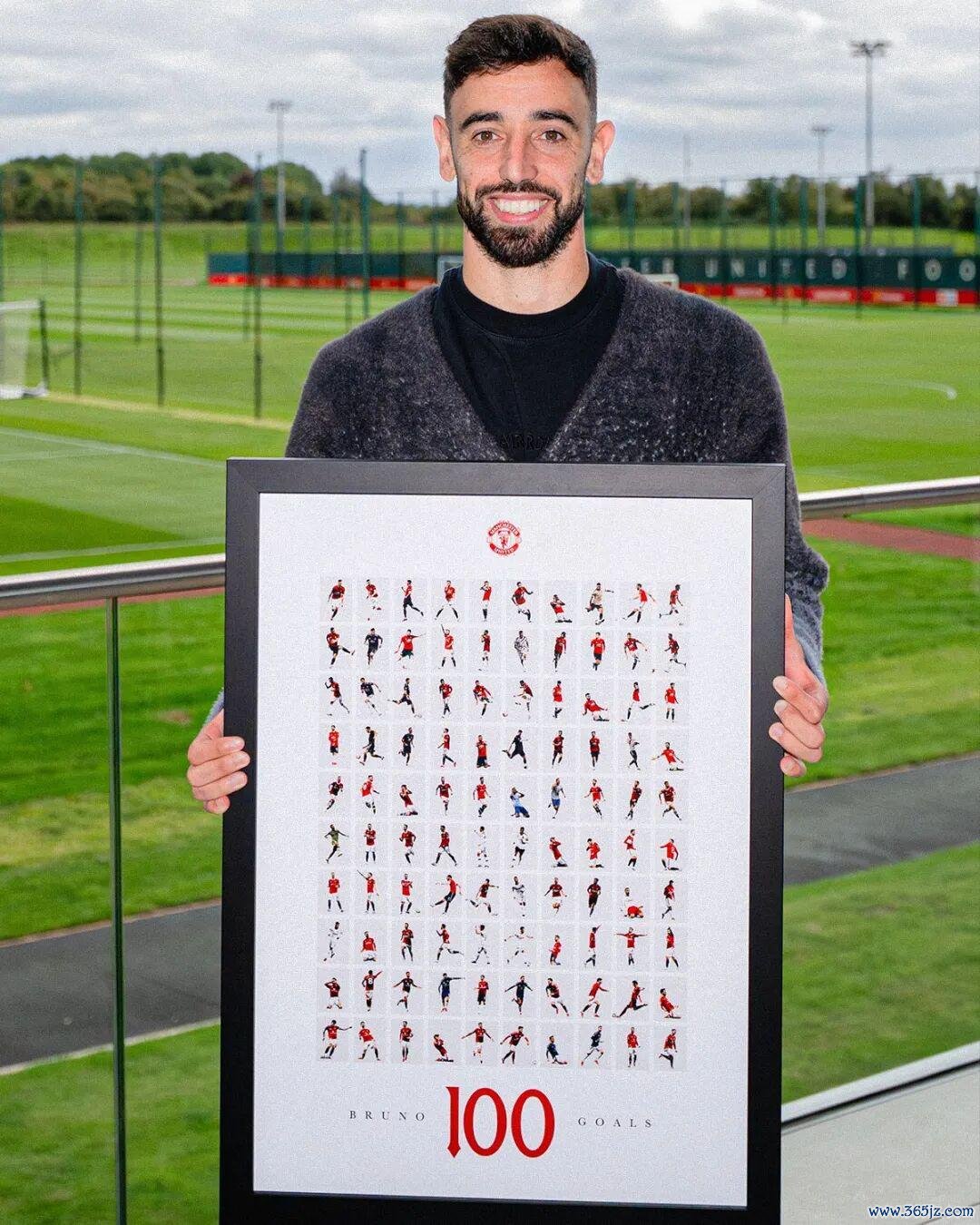 曼联为布鲁诺·费尔南德斯准备了一份尽头礼物,庆祝他为俱乐部打进100球。
