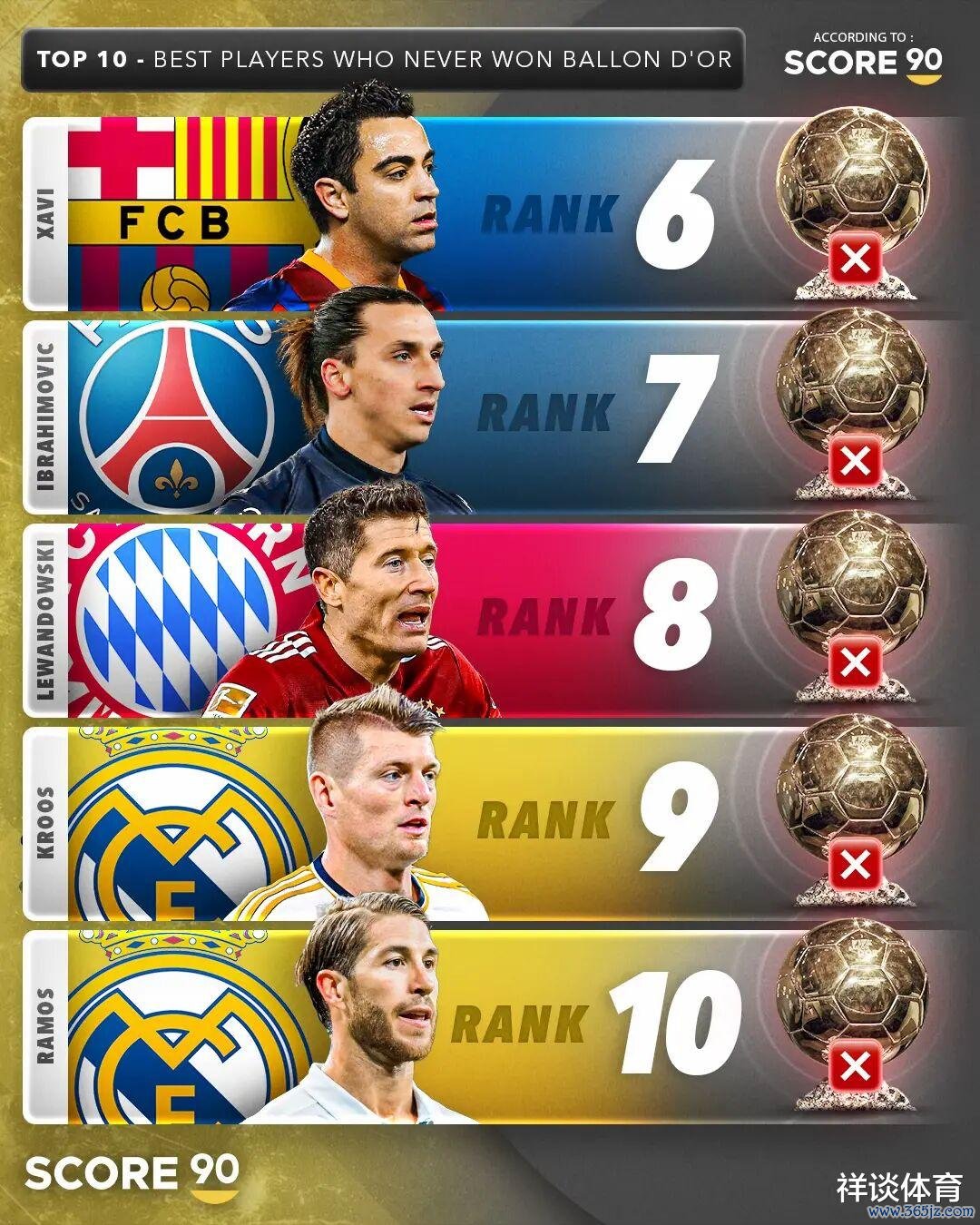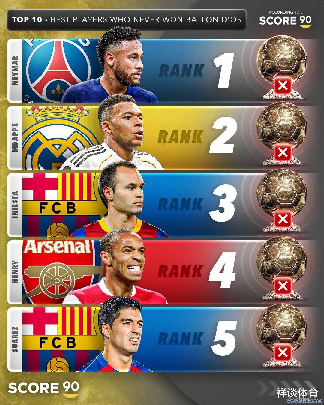 金球奖当作足坛的最高荣誉,这是许多顶级球员奇迹糊口心驰神往的。不外毕竟每年这个奖杯只颁布一次,因此有多半的明星球员终其扫数这个词奇迹糊口皆在金球奖上留有缺憾。而就在刚刚,数据网站S90评比出了一份从未夺得过金球奖的最好球员名单。