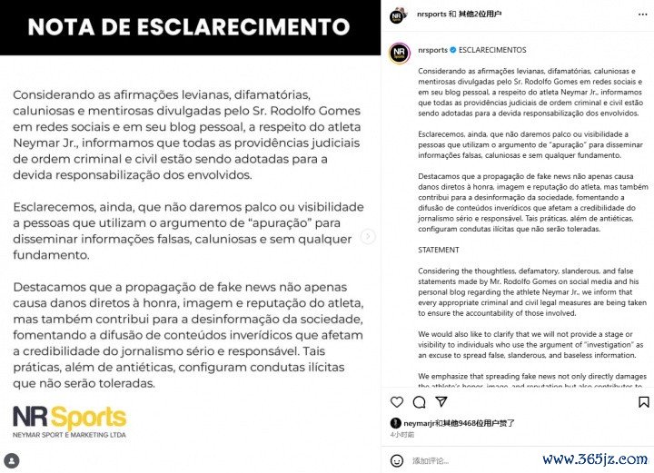内马尔倒是没允许这个新闻“传播”太久,他们赶紧给出了抗争告状了记者。不外正如开篇谈到,记者要叮咛到底,跟内马尔方面杠上了,因为他有宽裕“可靠的把柄”。