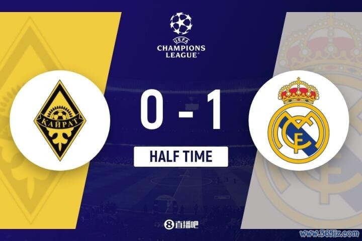 上半场莫得补时,阿拉木图凯拉特0-1皇马。