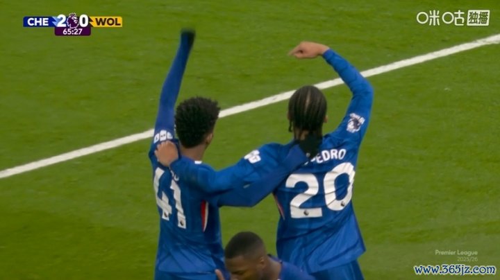 英超第11轮,切尔西3-0狼队,两位巴西国脚佩德罗与埃斯特旺庆祝