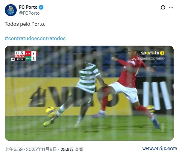 波尔图官方也晒出误判视频,配文:“扫数东谈主因循波尔图。”