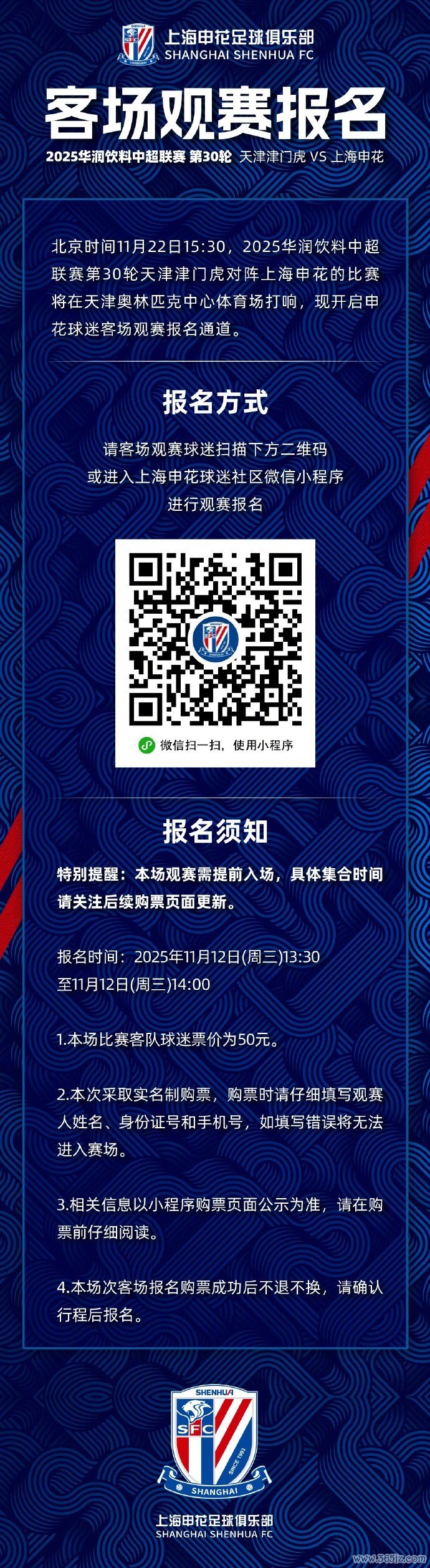 2025中超联赛第30轮 天津津门虎vs上海申花 客场不雅赛报名
